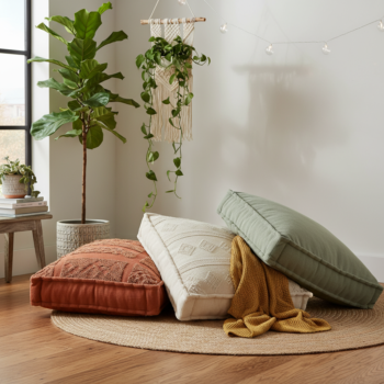 **Samenvatting:** Een vloerkussen biedt extra zitplaatsen en sfeer zonder vaste meubels. Perfect voor loungehoeken, meditatieruimtes en casual wonen. Ontdek de beste vloerkussens.